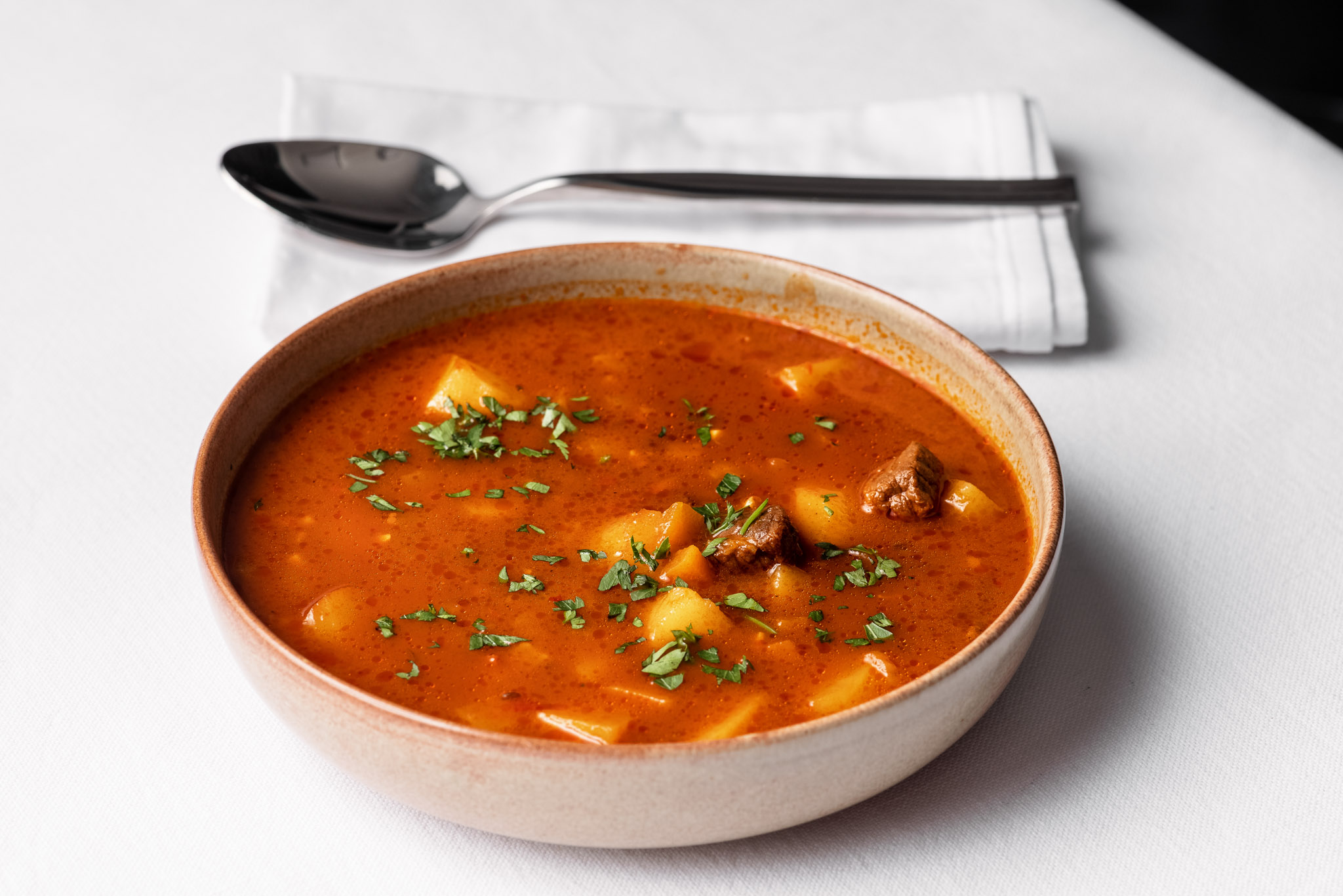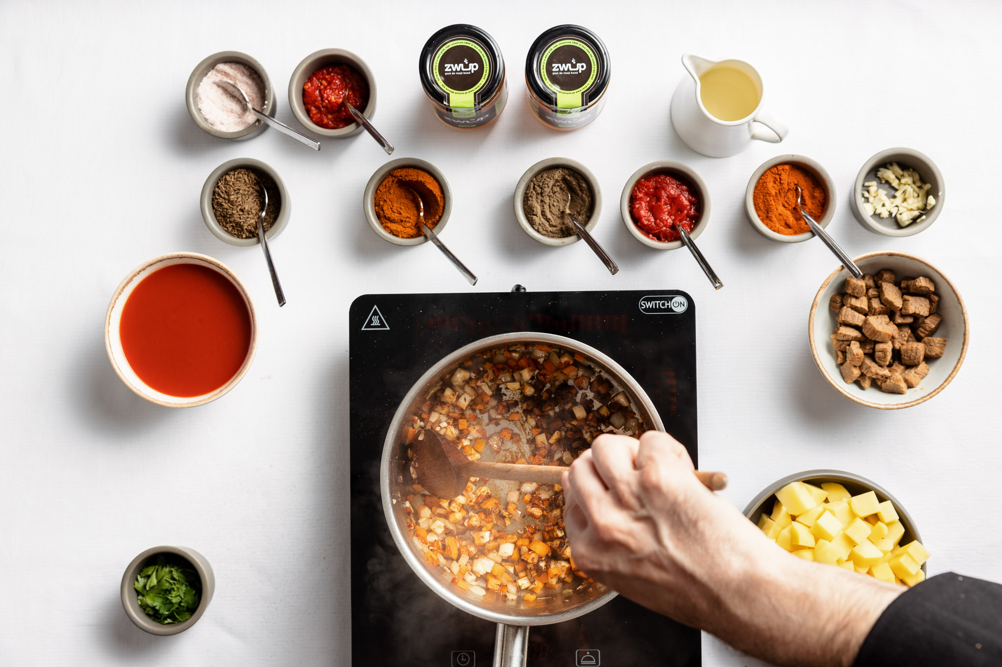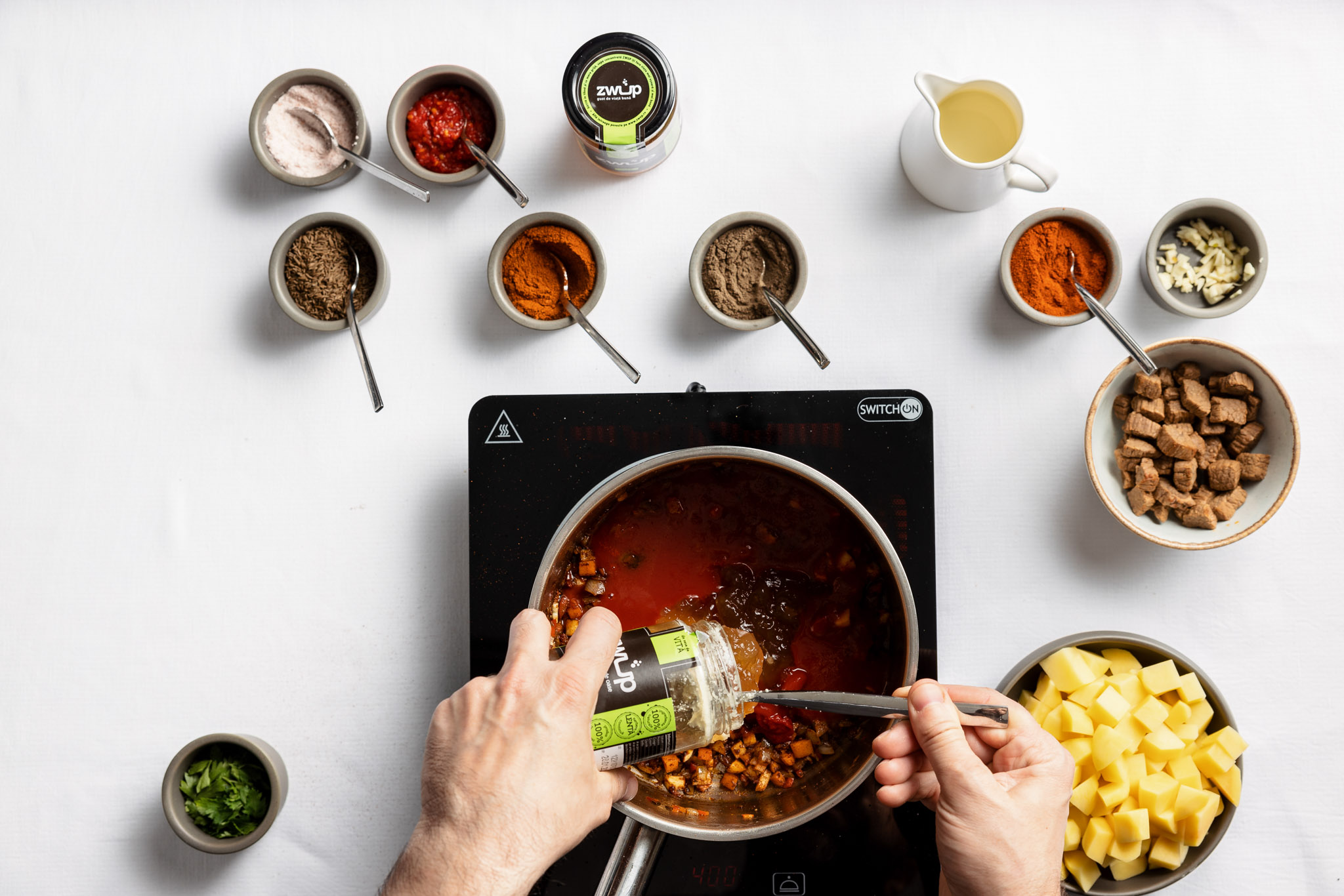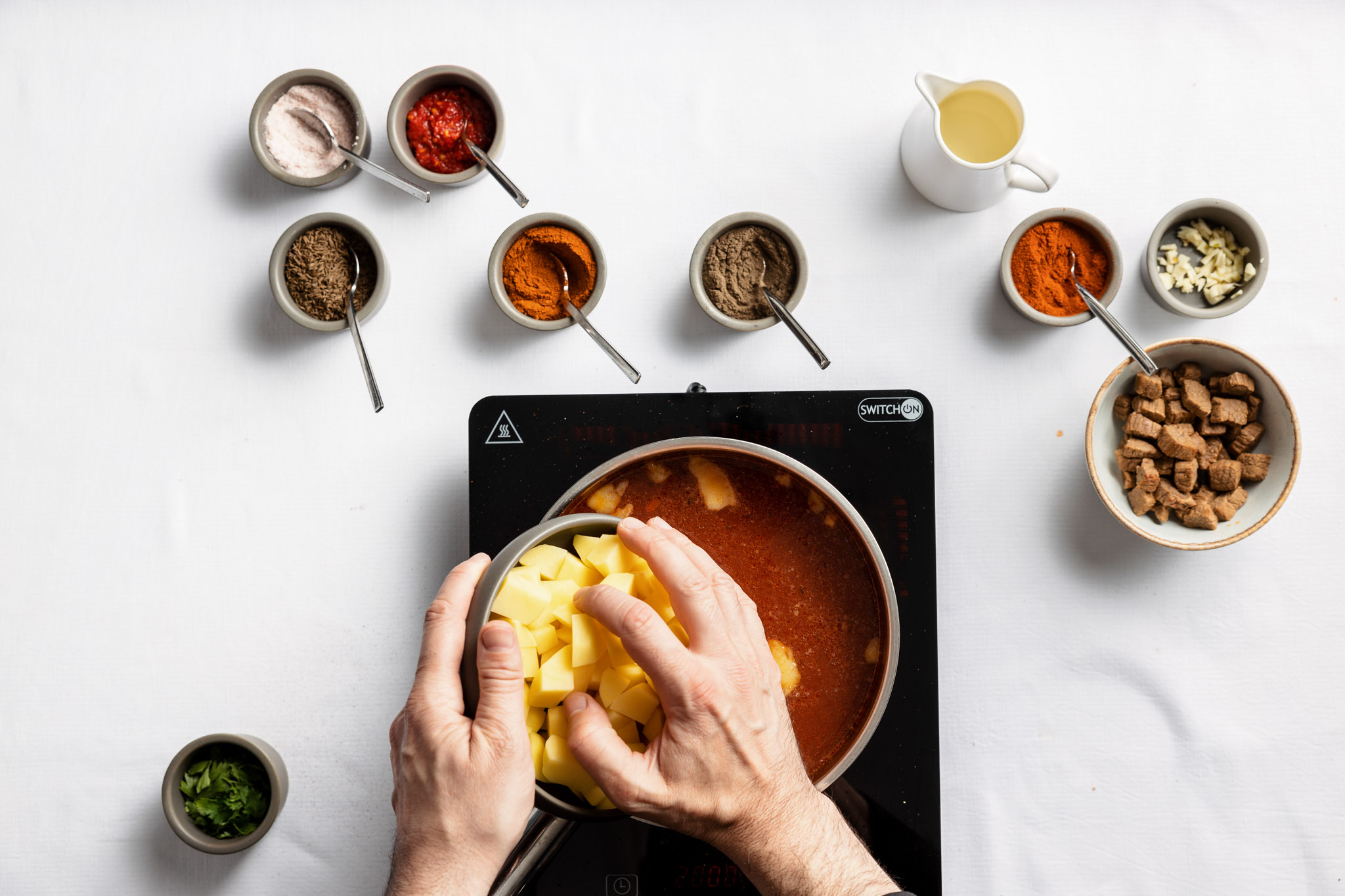Gulașul de vită e o mâncare hrănitoare și robustă, picantă cât să îți dea chef de viață și de o tărie aromată, potrivită pentru zile reci și oameni flămânzi, și întotdeauna perfectă pentru pregătit la ceaun în aer liber, la un foc de tabără ori lângă o cabană de munte. Dacă circumstanțele nu sunt prielnice gătitului îndelungat și răbdător, ZWUP îți permite să obții rapid și simplu un gulaș delicios, cu carne de vită gata fiartă, pregătită din timp sau rămasă de la alt preparat.