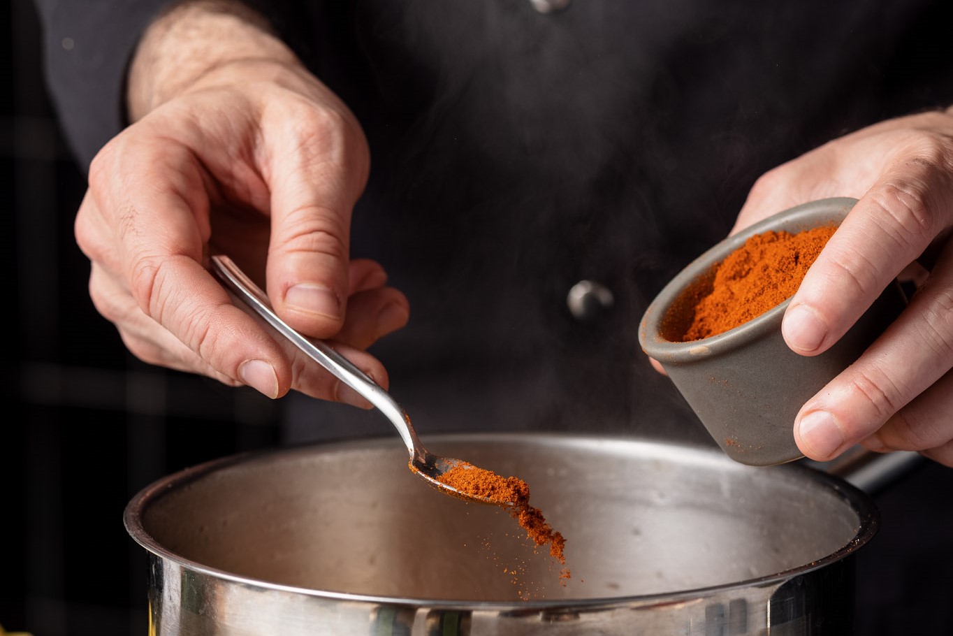 Adaugă spre final eros pista – pasta de ardei iute fără de care gulașul nu e gulaș, apoi mai dă două clocote și închide focul: mâncarea e gata!